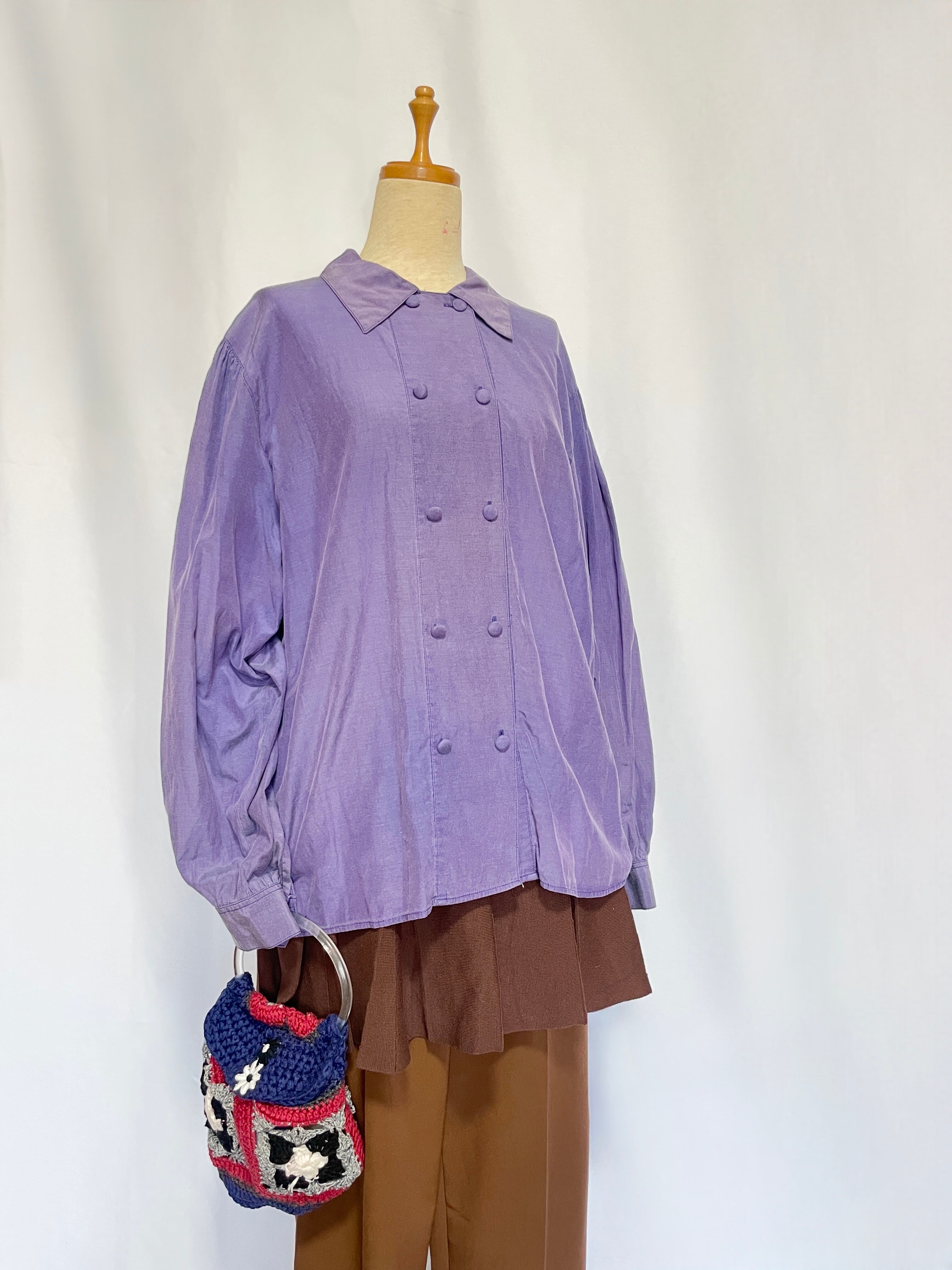 silk W shirt blouse purple