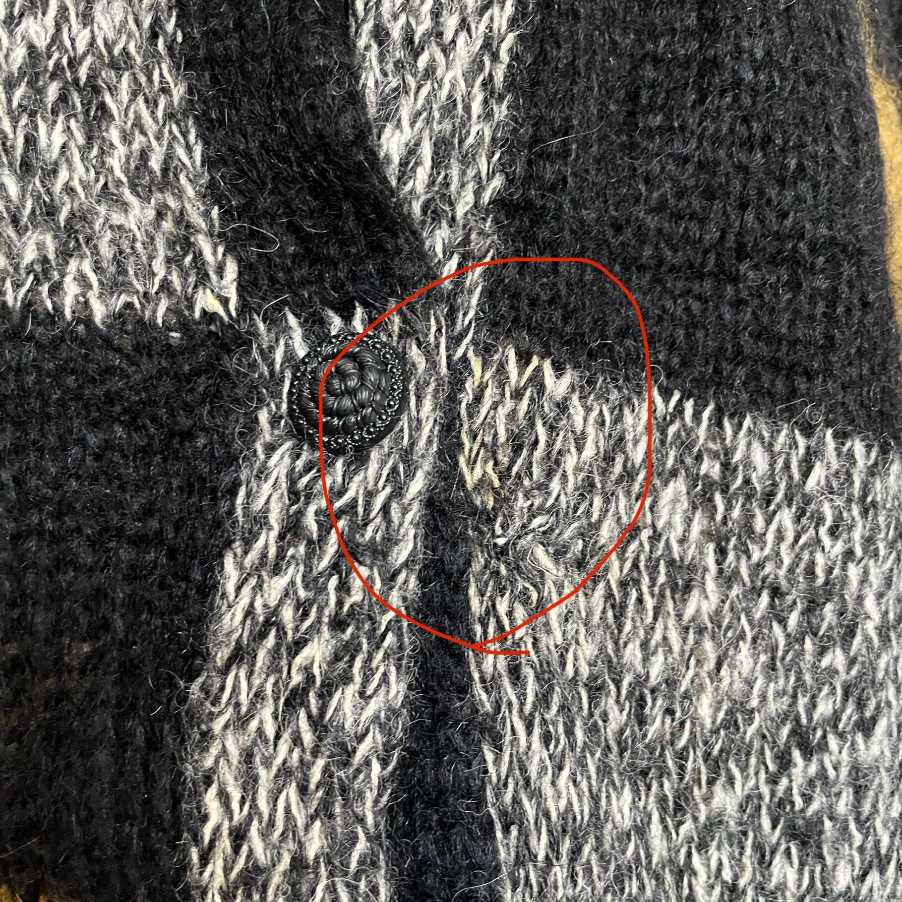 また、1番上のボタン留め位置のレザーに穴空きございます